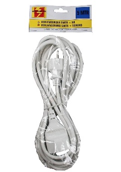 Rallonge blanche 5M, avec prise de terre (emballage suspendu)Rallonge blanche 5M, avec prise de terre (emballage suspendu)