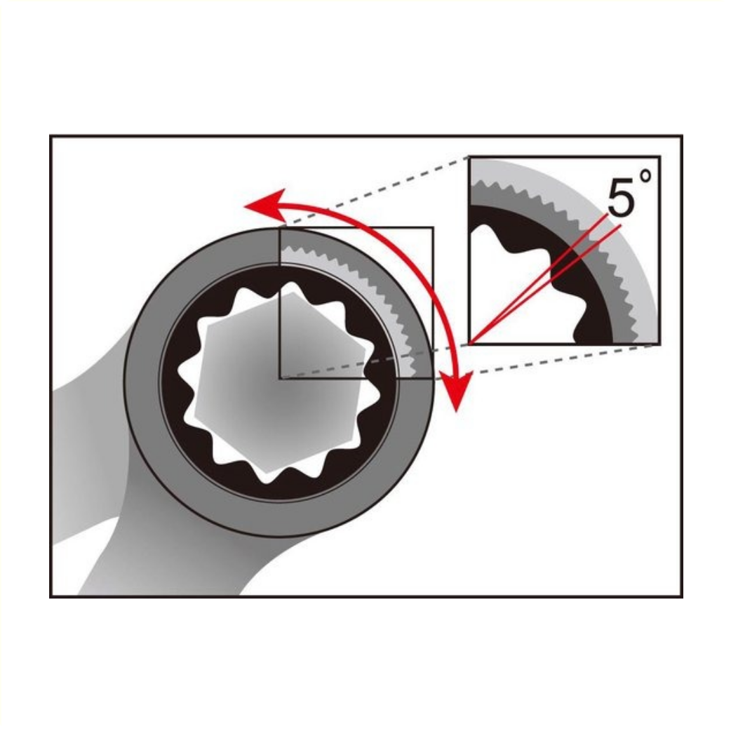 • Avec cliquet de déverrouillage tous les 5° côté clé polygonale.