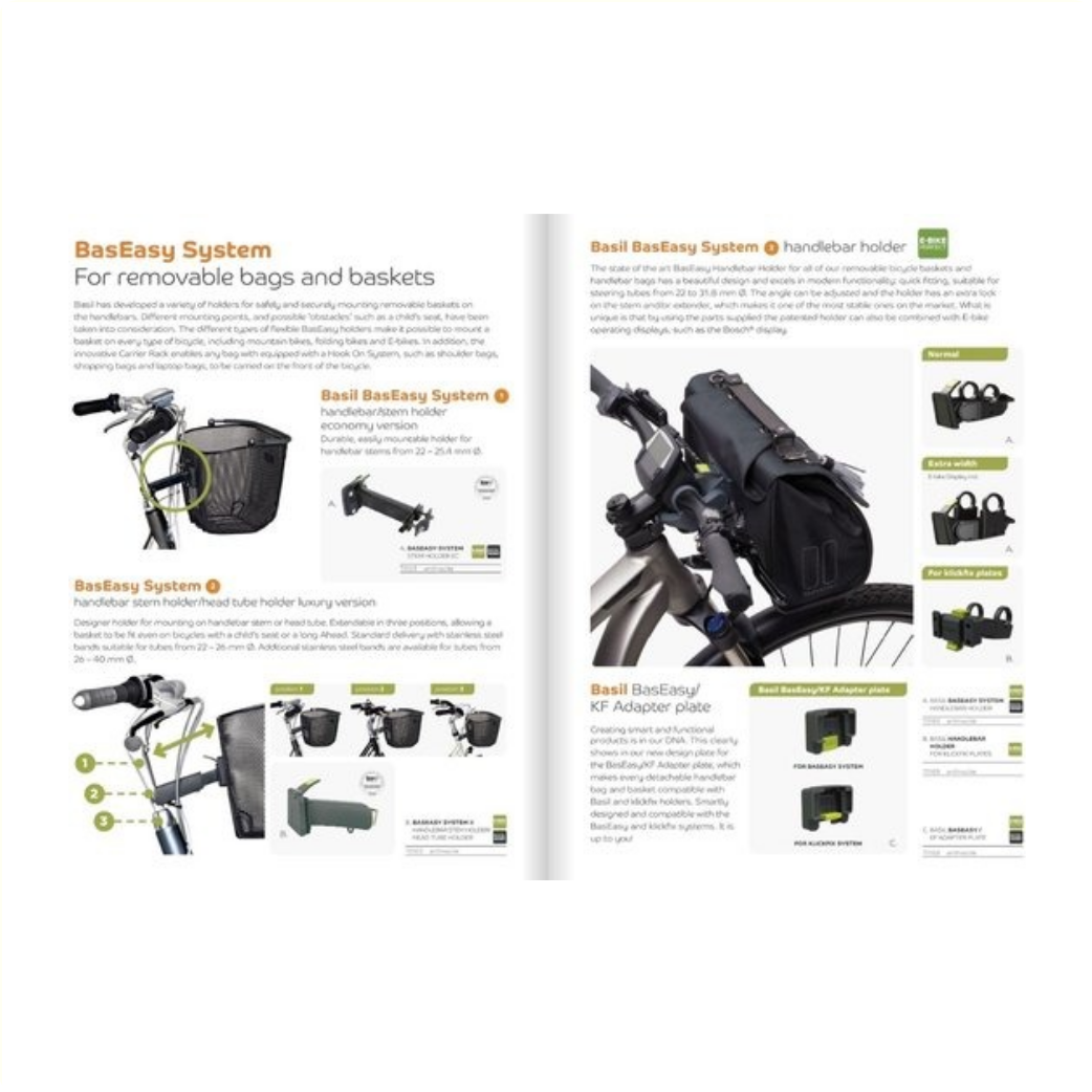 Le support de guidon Basil KF est un support de guidon adapté aux sacoches et paniers de guidon amovibles.