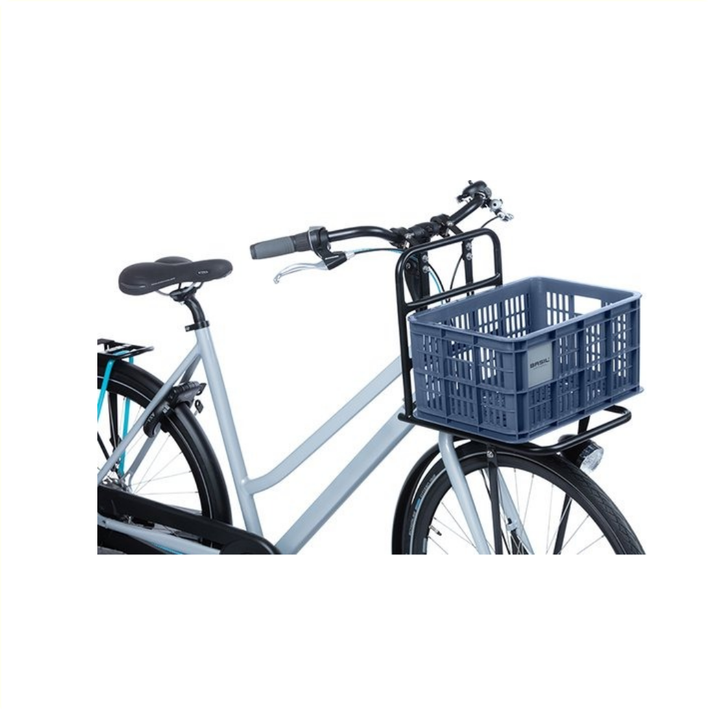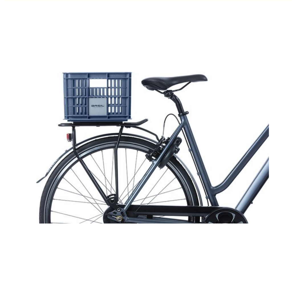 The Basil bicycle crate in size S is a blue bicycle crate for a women's, men's or children's bicycle.