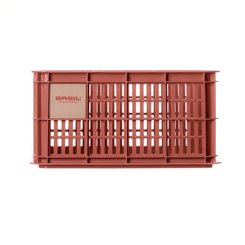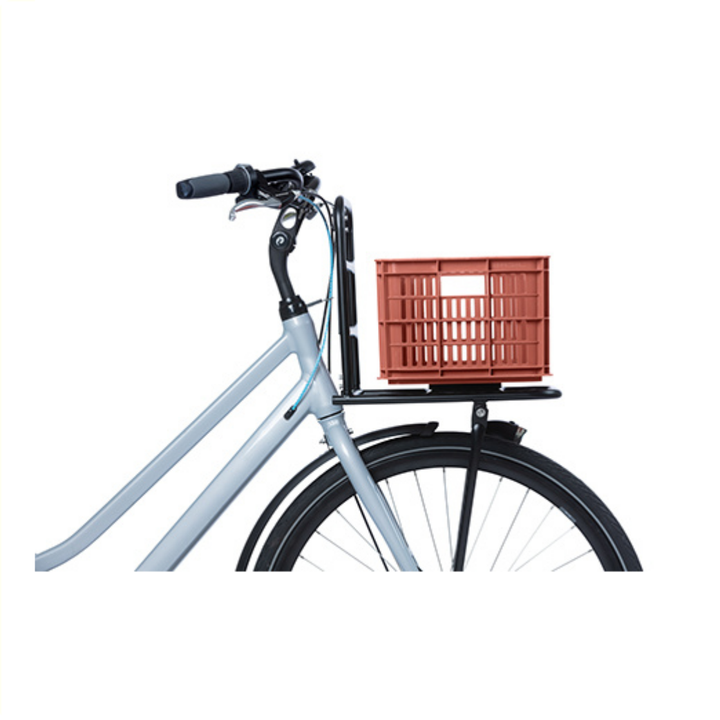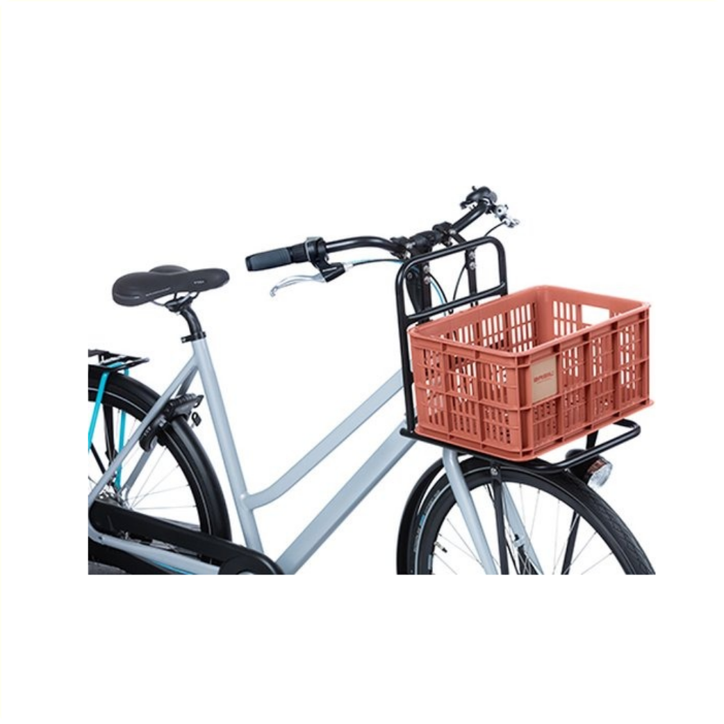 La caisse à vélo Basil de taille S est une caisse à vélo de couleur terre cuite pour un vélo pour femme, homme ou enfant.