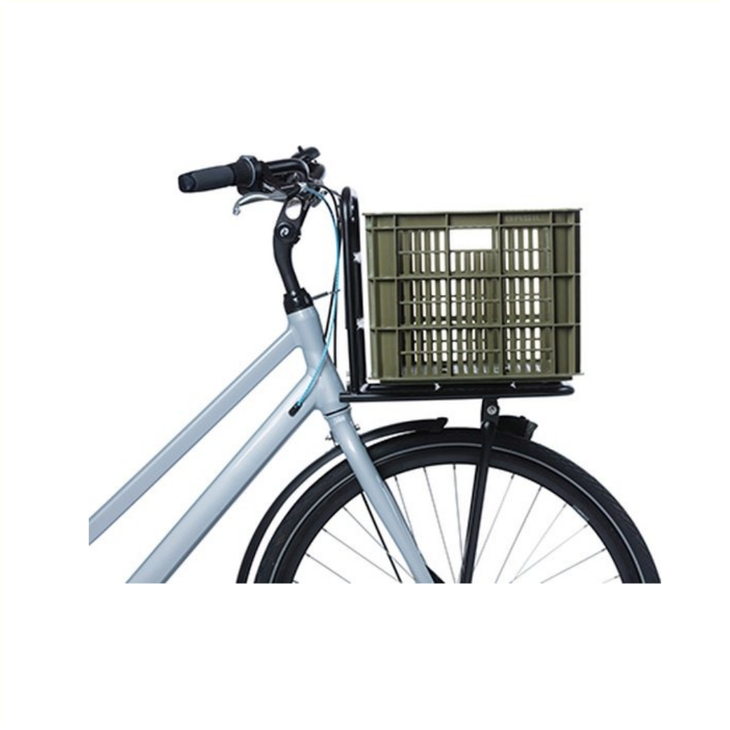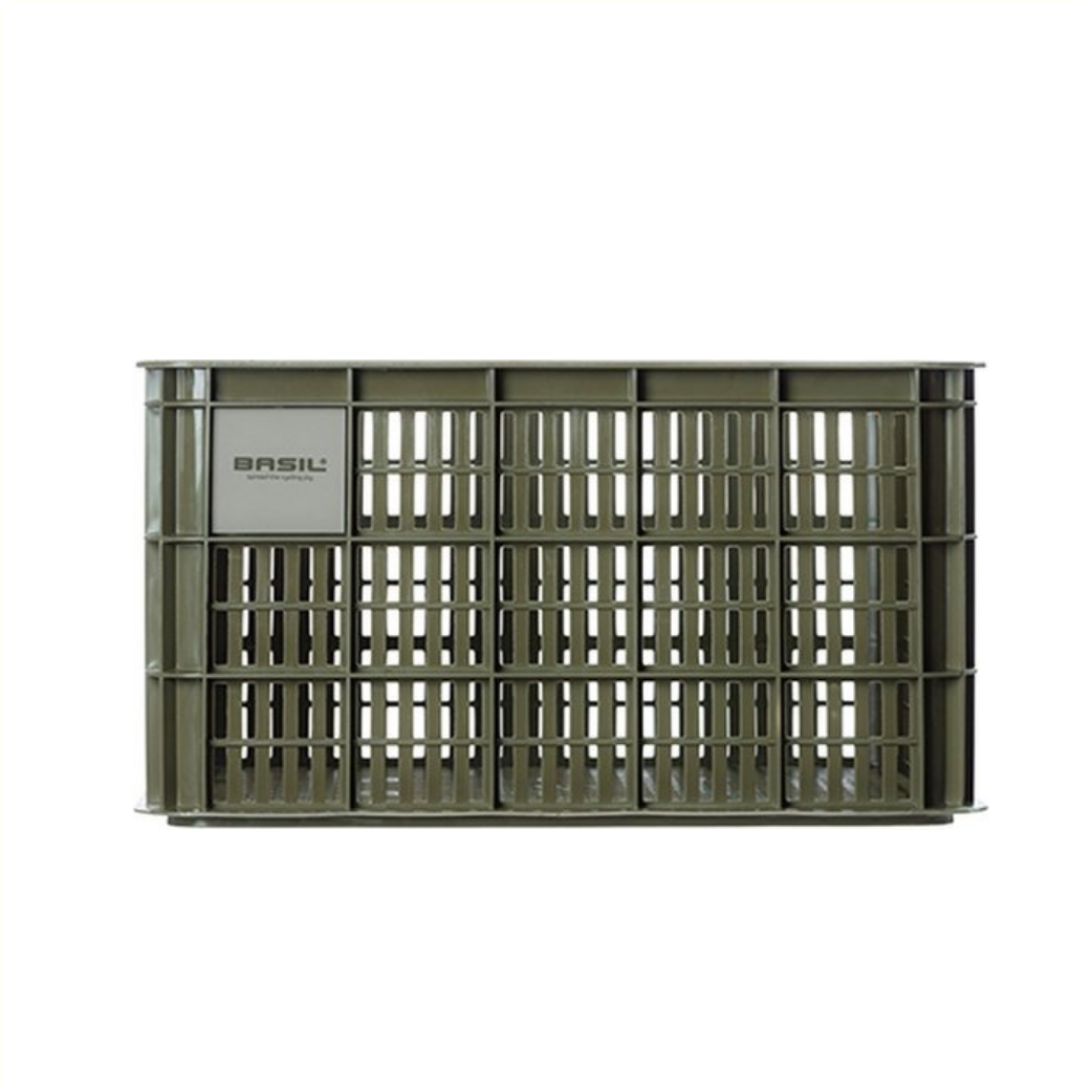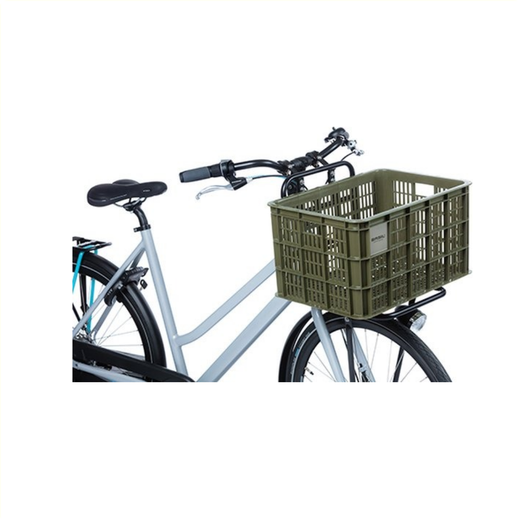 La caisse à vélo Basil de taille S est une caisse à vélo verte pour un vélo pour femme, homme ou enfant.