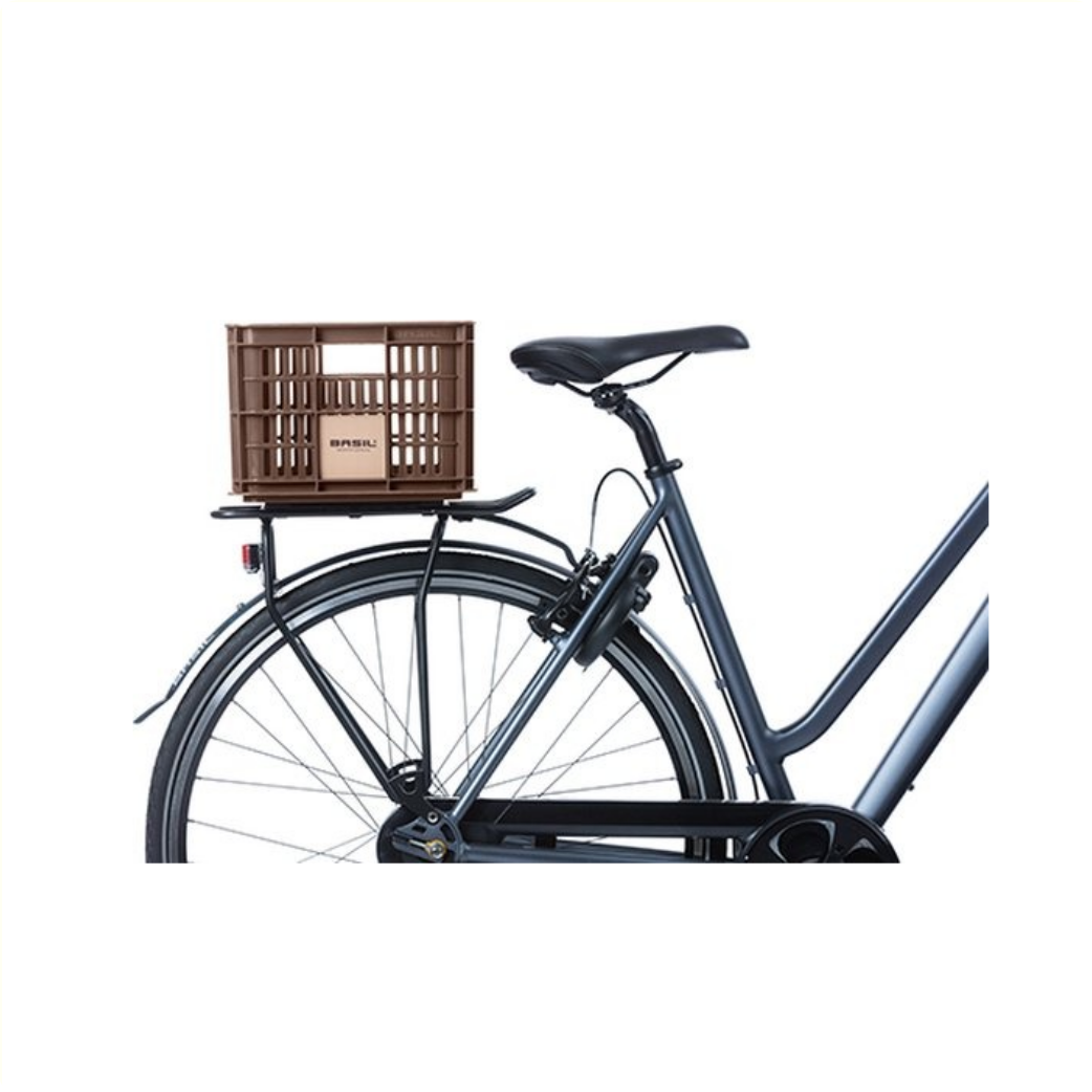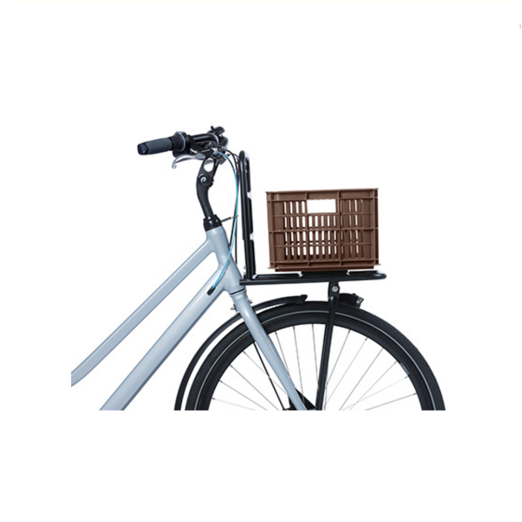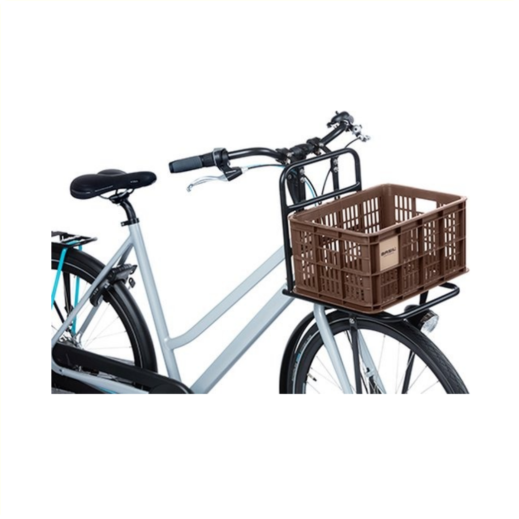 La caisse à vélo Basil de taille S est une caisse à vélo noire pour un vélo pour femme, homme ou enfant.