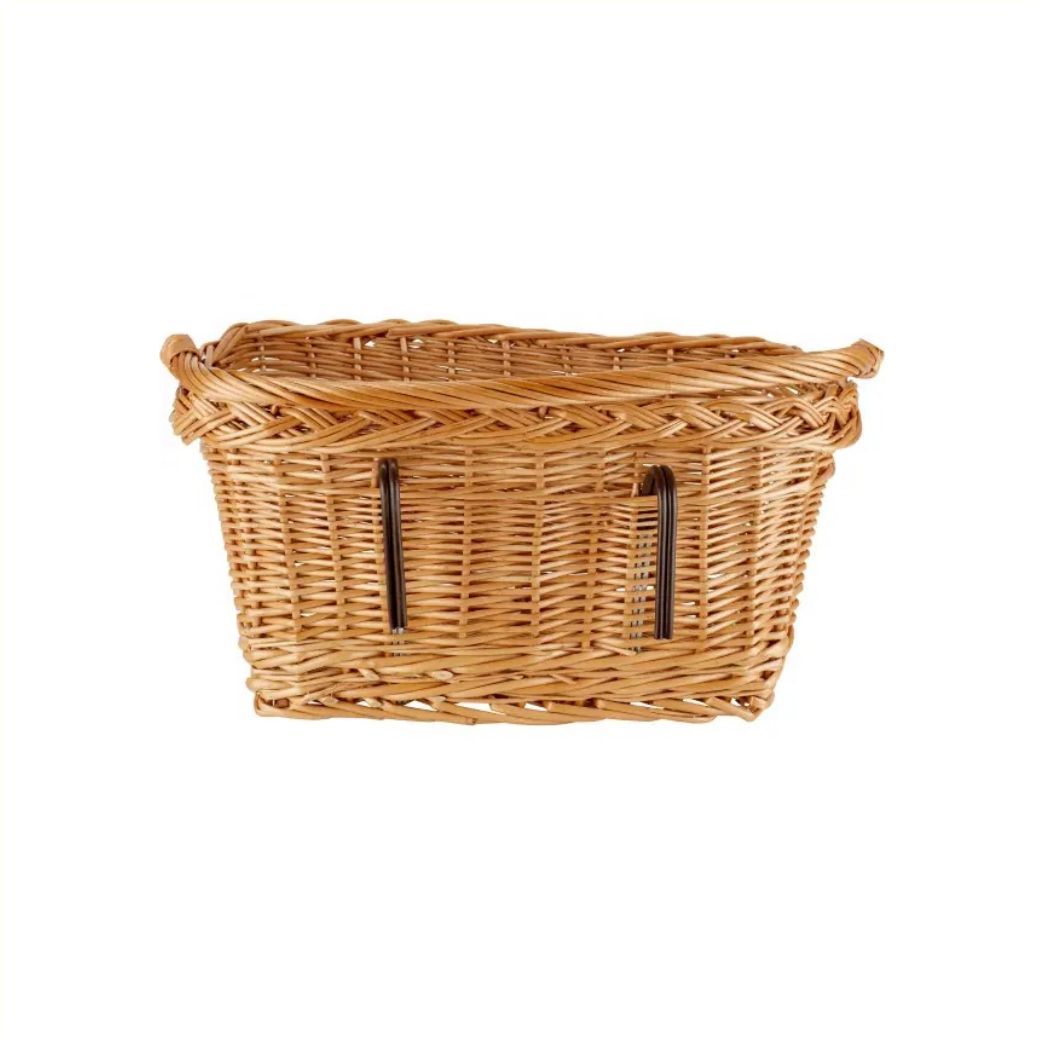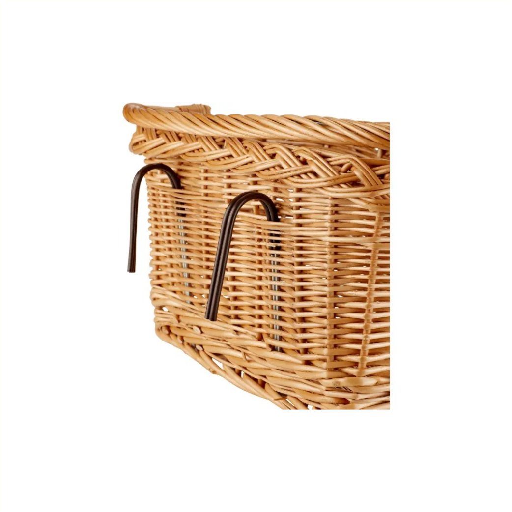 Le Basil Davos est un panier de vélo rectangulaire en osier. Ce panier de vélo élégant et au fini naturel convient à l'avant ou à l'arrière de votre vélo pour femme.