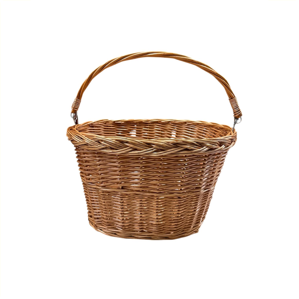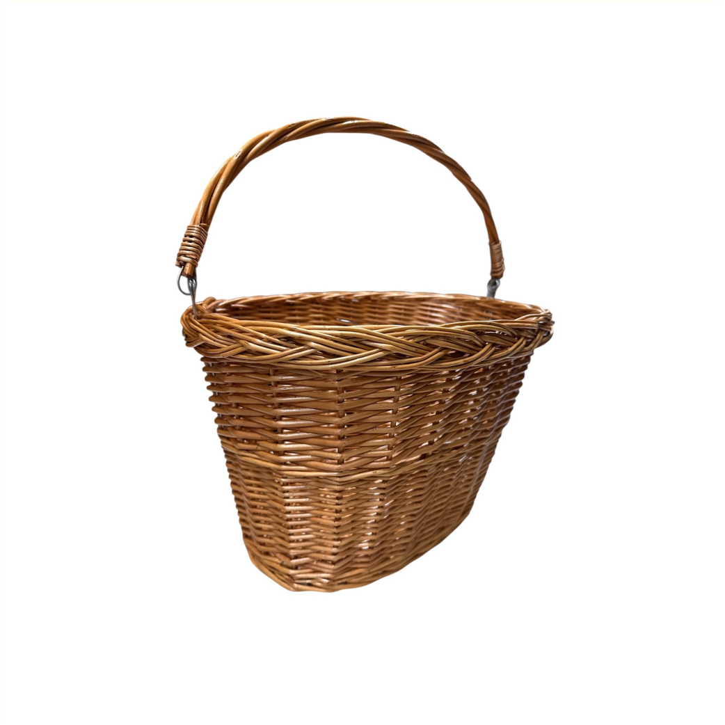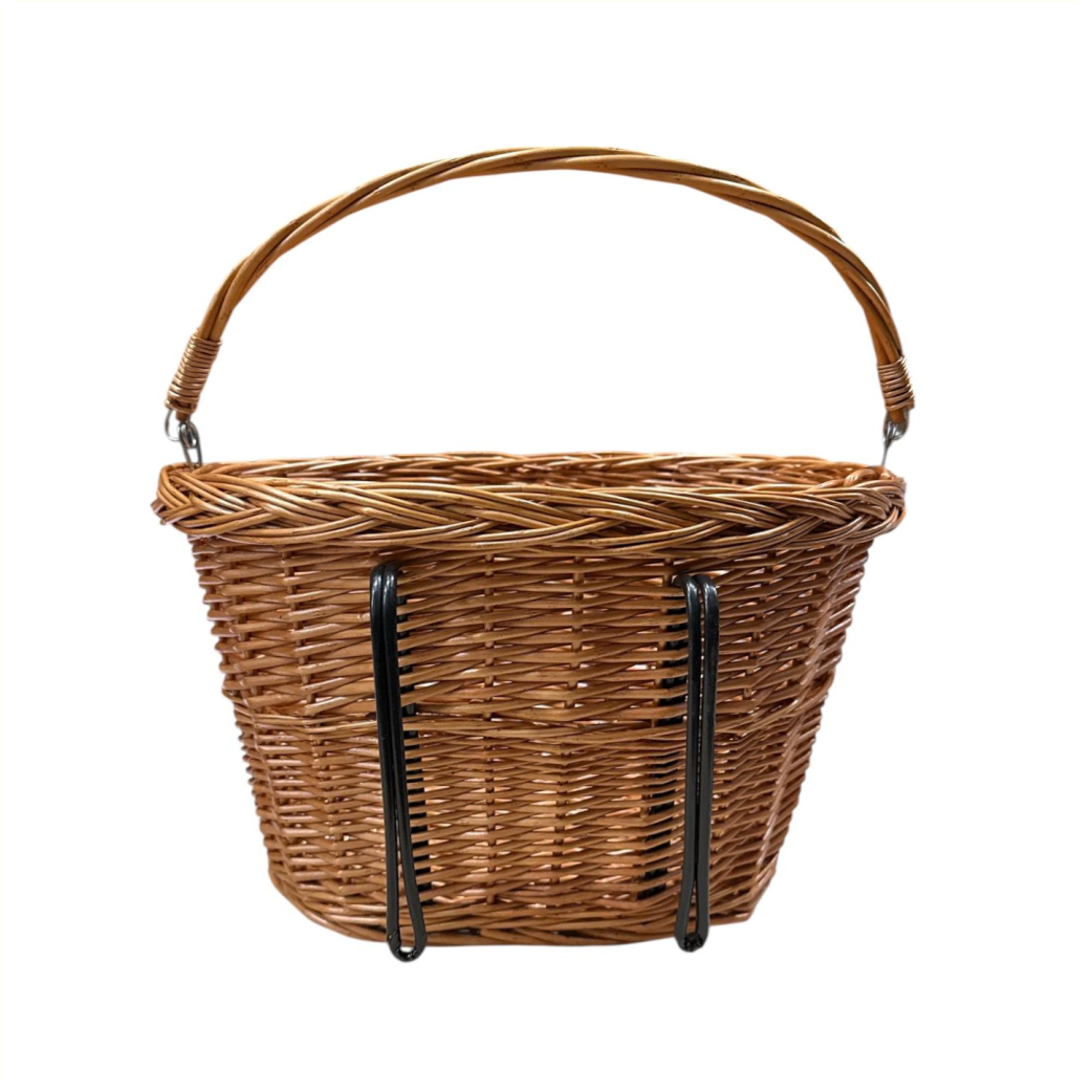 Ce panier en osier s'adapte sur le guidon de votre vélo.