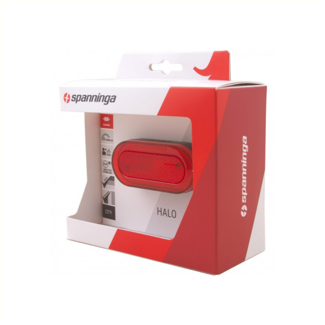 La version vélo électrique du HALO est dotée de la fonction Stop-Light innovante basée sur un décélérateur, qui augmente la sécurité des navetteurs électriques en produisant un faisceau lumineux et sûr de 19 Candela lorsque le cycliste ralentit, freine et s'arrête dans la circulation. La fonction de feu de circulation basée sur le ralentisseur est activée lorsqu'il y a un changement de vitesse (décélération) d'environ 1,25 à 1,5 m/s, ce qui entraîne une distance de visibilité de 750 mètres.