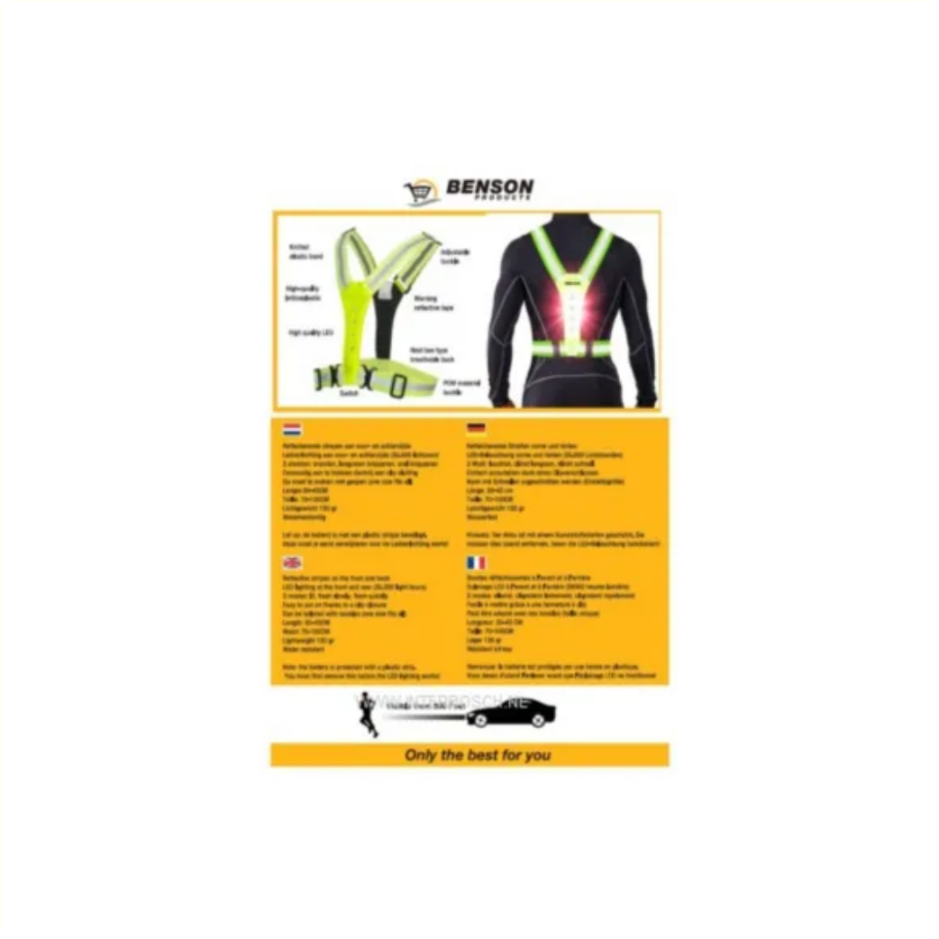 résistant à l'eau • Taille unique • 3 modes d'éclairage réglables • 4 lumières LED blanches pour • 4 feux LED rouges à l'arrière • Réflexion sur le devant et le dos • y compris les piles