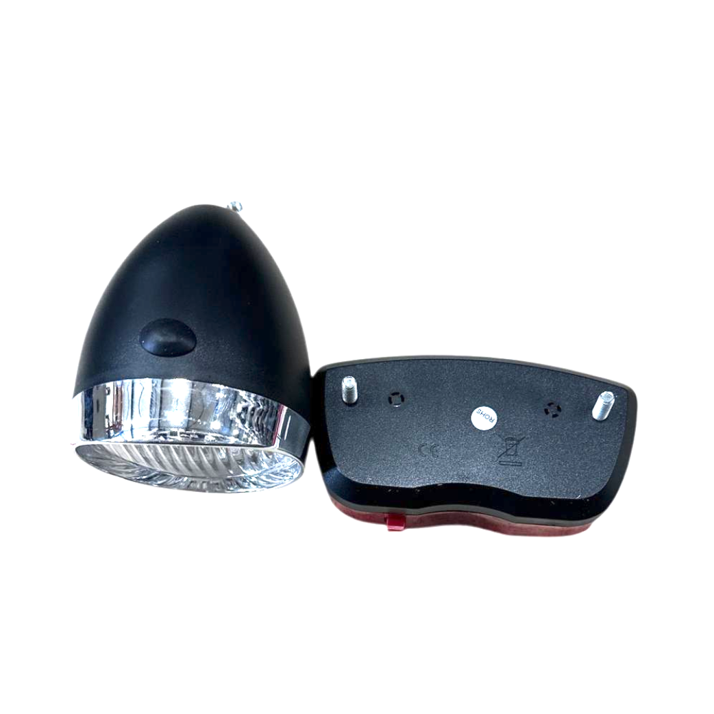 Design rétro élégant : Le phare avant arbore un look intemporel qui s'accorde parfaitement avec les vélos de ville modernes et les vélos classiques de style hollandais. Réflecteurs intégrés : Le phare et le feu arrière sont tous deux équipés de réflecteurs intégrés, vous assurant une visibilité optimale même lorsque les feux sont éteints.