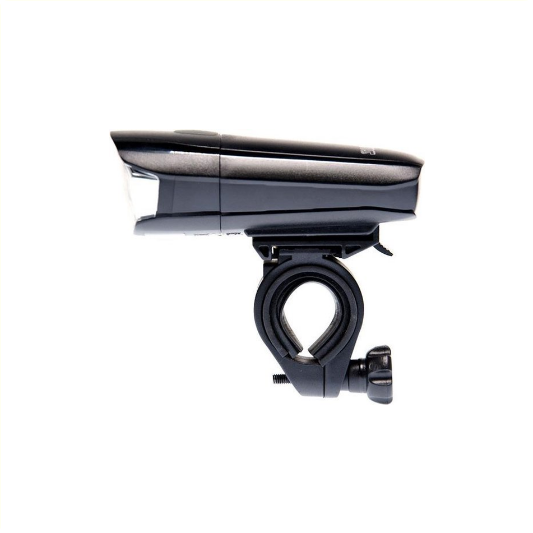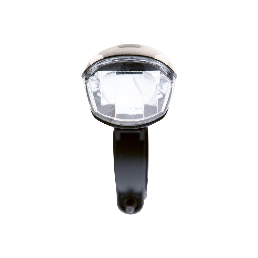 La lampe frontale à LED à batterie Simson « Amaze » est une lampe frontale puissante avec un boîtier en plastique et un support de guidon.