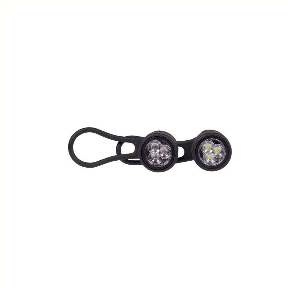 The Simson Battery LED set "Simmy" has a silicone housing and a universal silicone mounting strap for easy use on, for example, the seat post or the handlebars.
