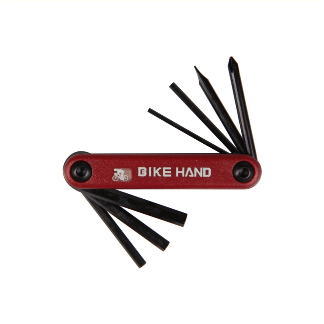 • L'outil multifonction Simson contient un tournevis cruciforme, un tournevis plat et 5 tailles de clés Allen (2, 3, 4, 5 et 6 mm).