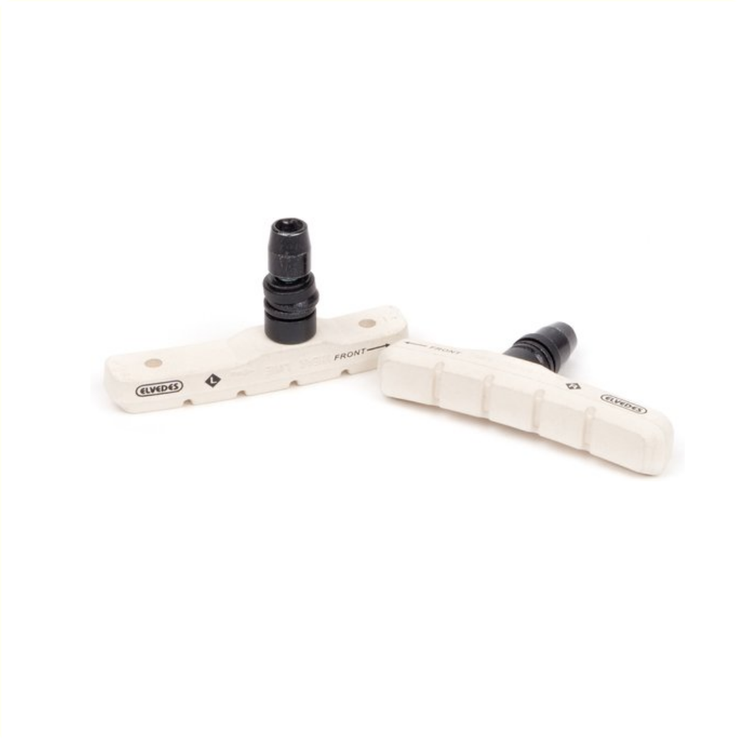 Plaquettes de frein Elvedes. Grâce à la composition particulière de la plaquette de frein, aucun résidu noir ne reste sur votre jante et votre pneu. par ensemble