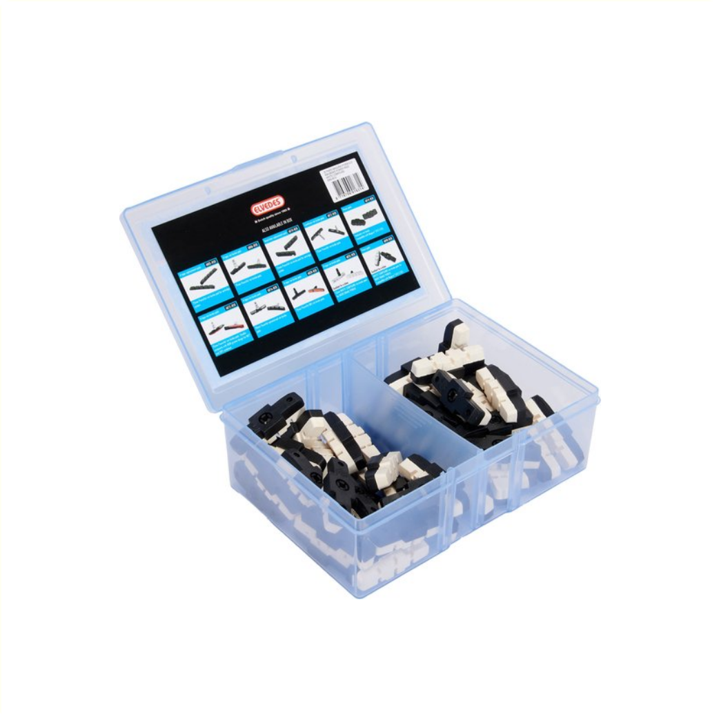 Plaquettes de frein Elvedes Magura compatibles 25 paires en boîte. Ces plaquettes de frein blanches ne laissent aucun résidu noir sur la jante