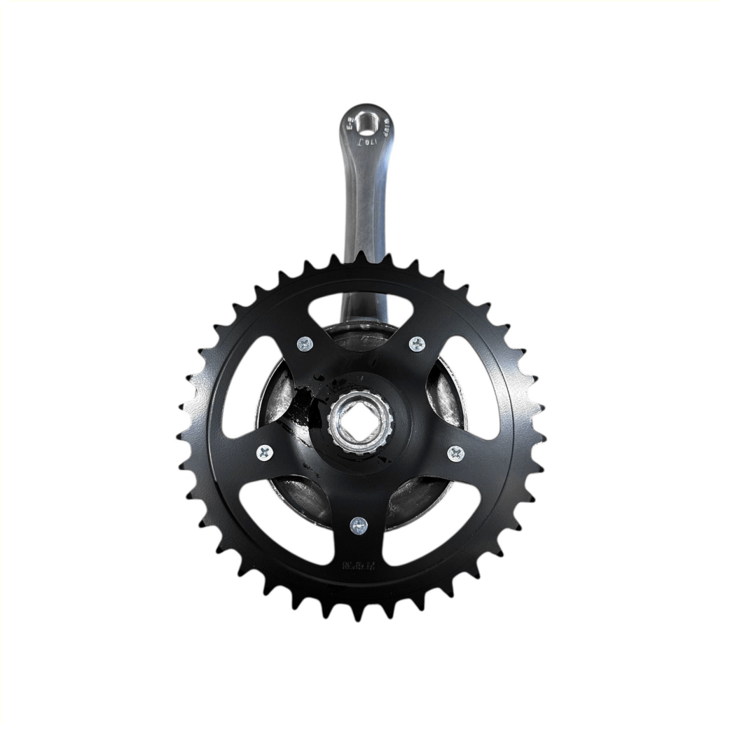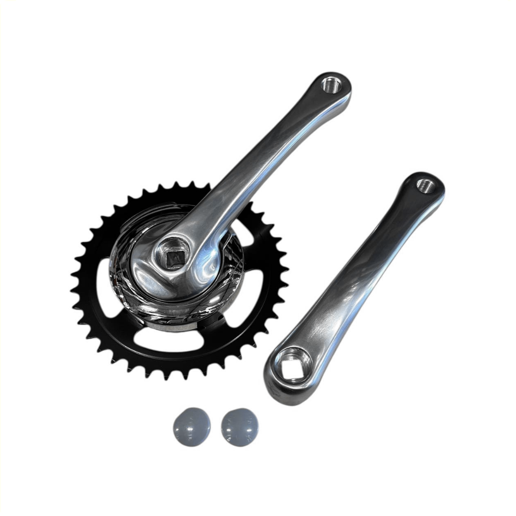 Pédalier FALKX • Couleur : argent • Matériau : aluminium • Type de vélo : vélo de ville • Nombre de vitesses : vitesse unique • Nombre de dents : 38T • Longueur du bras de manivelle : 170 mm • Convient à la taille de la chaîne : 3/32 pouce Contenu: • 1 pédalier • 1 manivelle gauche