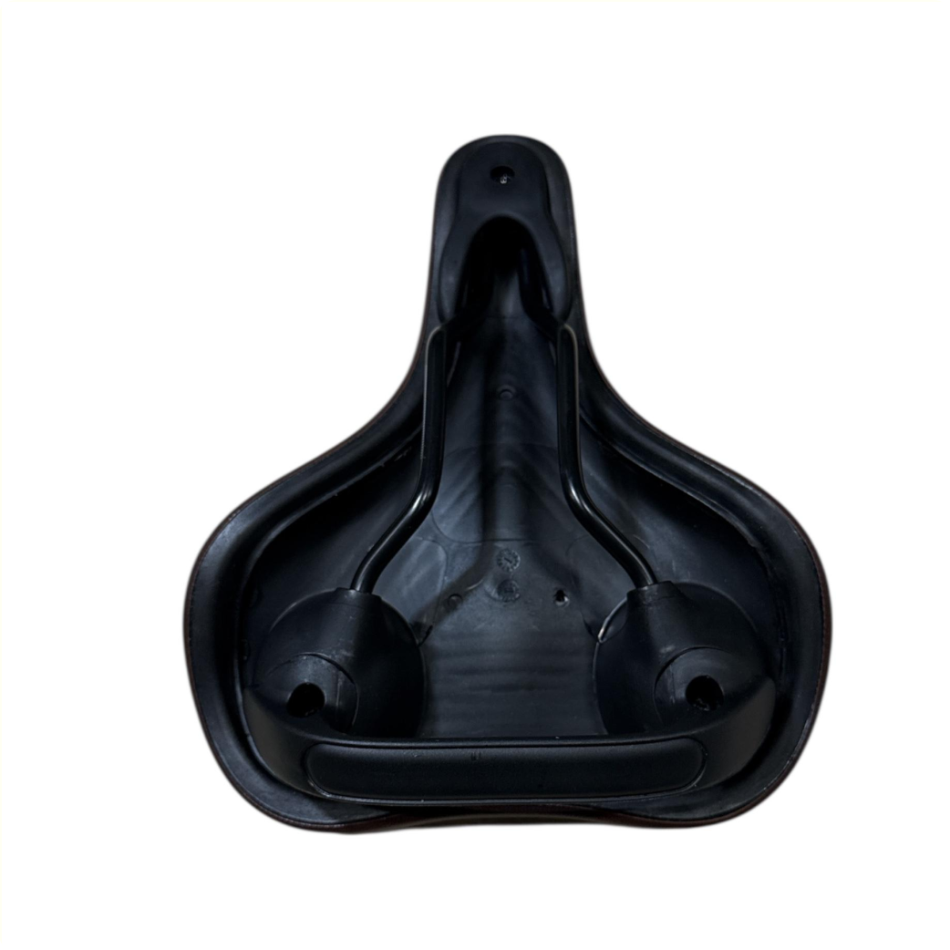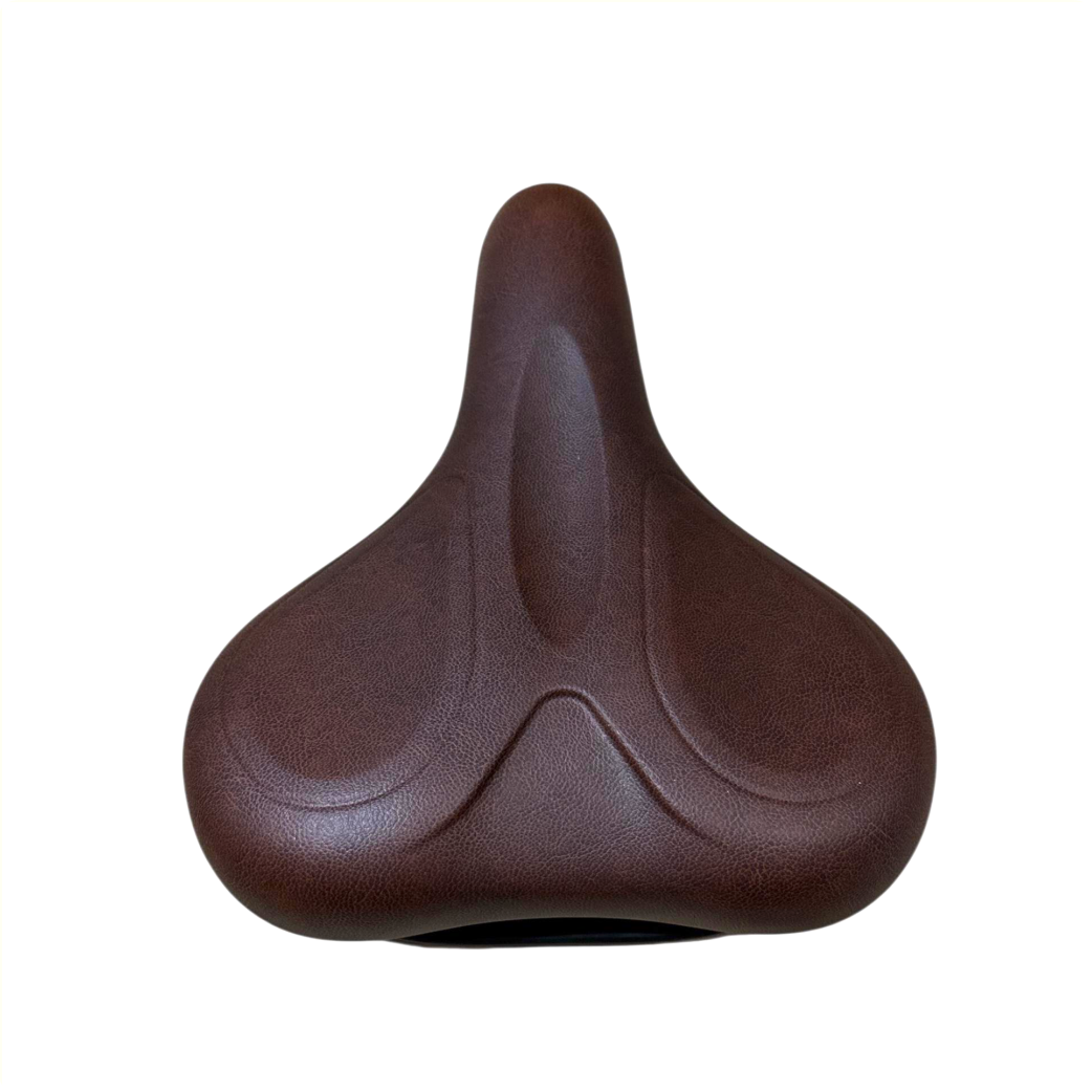Selle Selle Comfort E-Bike Soft marron moyen avec poignée, sans sangle de selle.