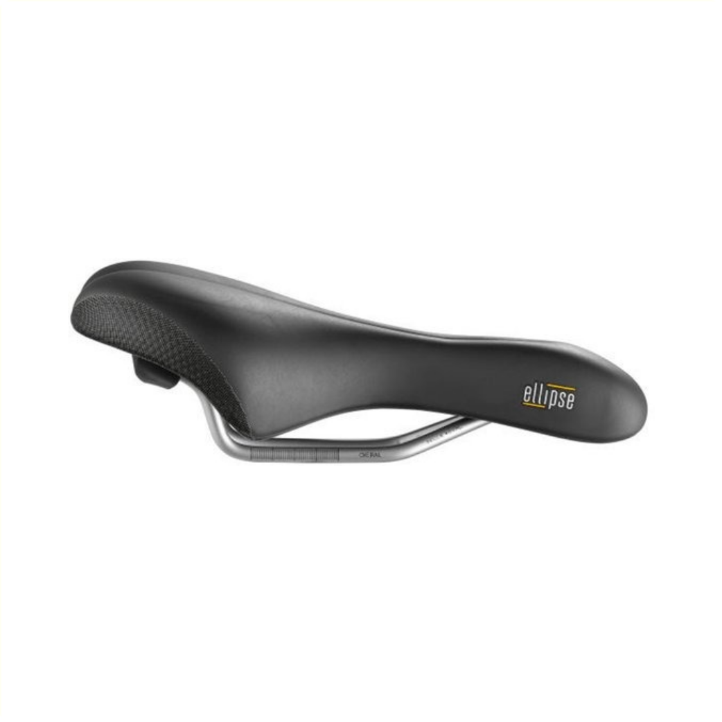 The Elipse is an anatomically shaped saddle with a recess in the middle of the saddle for pressure relief.